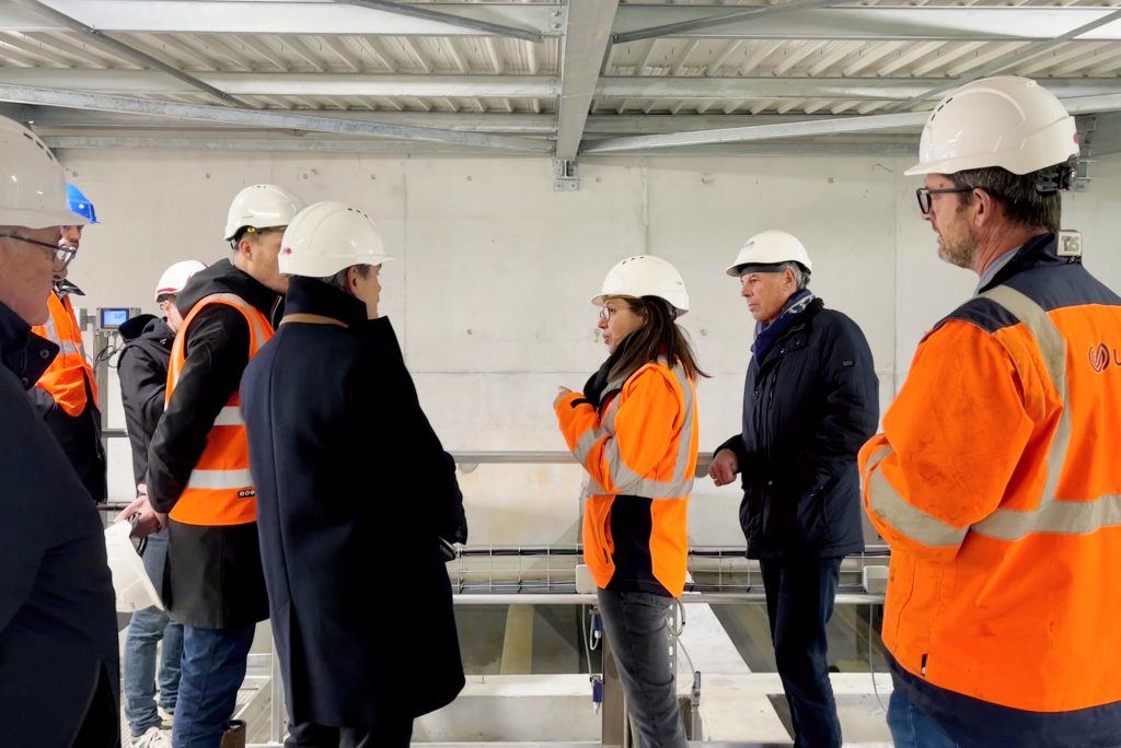 Les équipes de SUEZ DEGREMONT, accompagnées de Jessica Miseriaux directrice du syndicat, ont présenté le fonctionnement et les installations de l’usine. Les entreprises Entreprise Pinto et SOTRAV ont expliqué leur rôle dans la construction et l’équipement de l’usine.